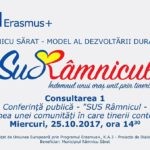 A1 – Conferință publică „SUSRamnicul – viziunea unei comunități în care tinerii contează” – 100 de participanți – 80 de tineri (20 cu oportunități reduse) și 20 de factori de decizie – Metoda Open Space Technology.