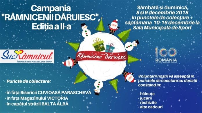Voluntarii râmniceni lansează pentru cel de-al doilea an Campania RÂMNICENII DĂRUIESC, oferind invitația de ajutorare a copiilor nevoiași din comunitatea râmniceană tuturor celor care au posibilitatea să doneze: hăinuțe, jucări sau rechizite. Punctele de colectare rămân aceleași: