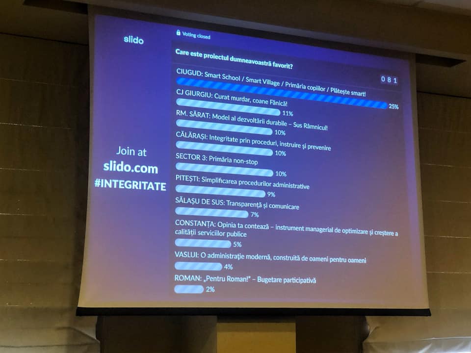 Urmare a votului public exprimat de reprezentanții comunităților participante la eveniment, municipiul Râmnicu Sărat a ocupat poziția a treia, evaluarea realizându-se în urma prezentărilor comunităților selectate. Cluj Napoca s-a clasat pe prima poziție, urmată de Comuna Ciugud, prima “comună inteligentă” din România.